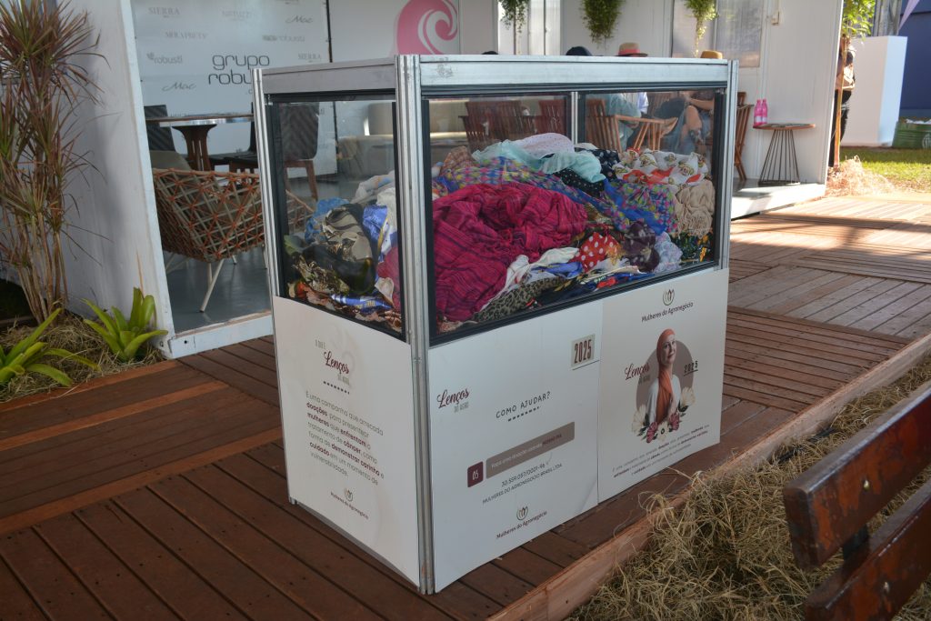 Uma iniciativa de solidariedade no Agrishow Pra Elas! Durante toda feira, o espaço promoveu a coleta de lenços para doação à mulheres em tratamento de câncer.
